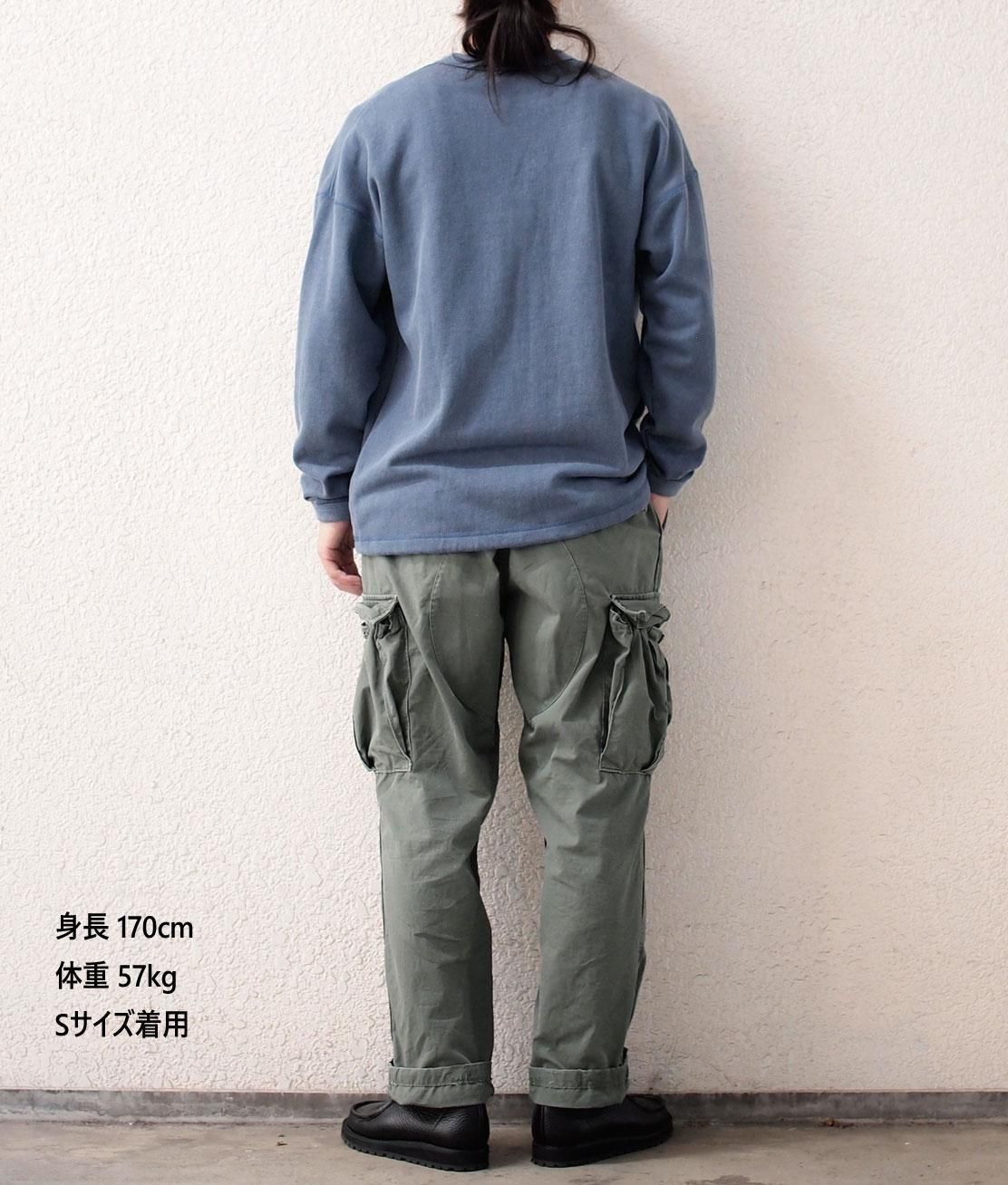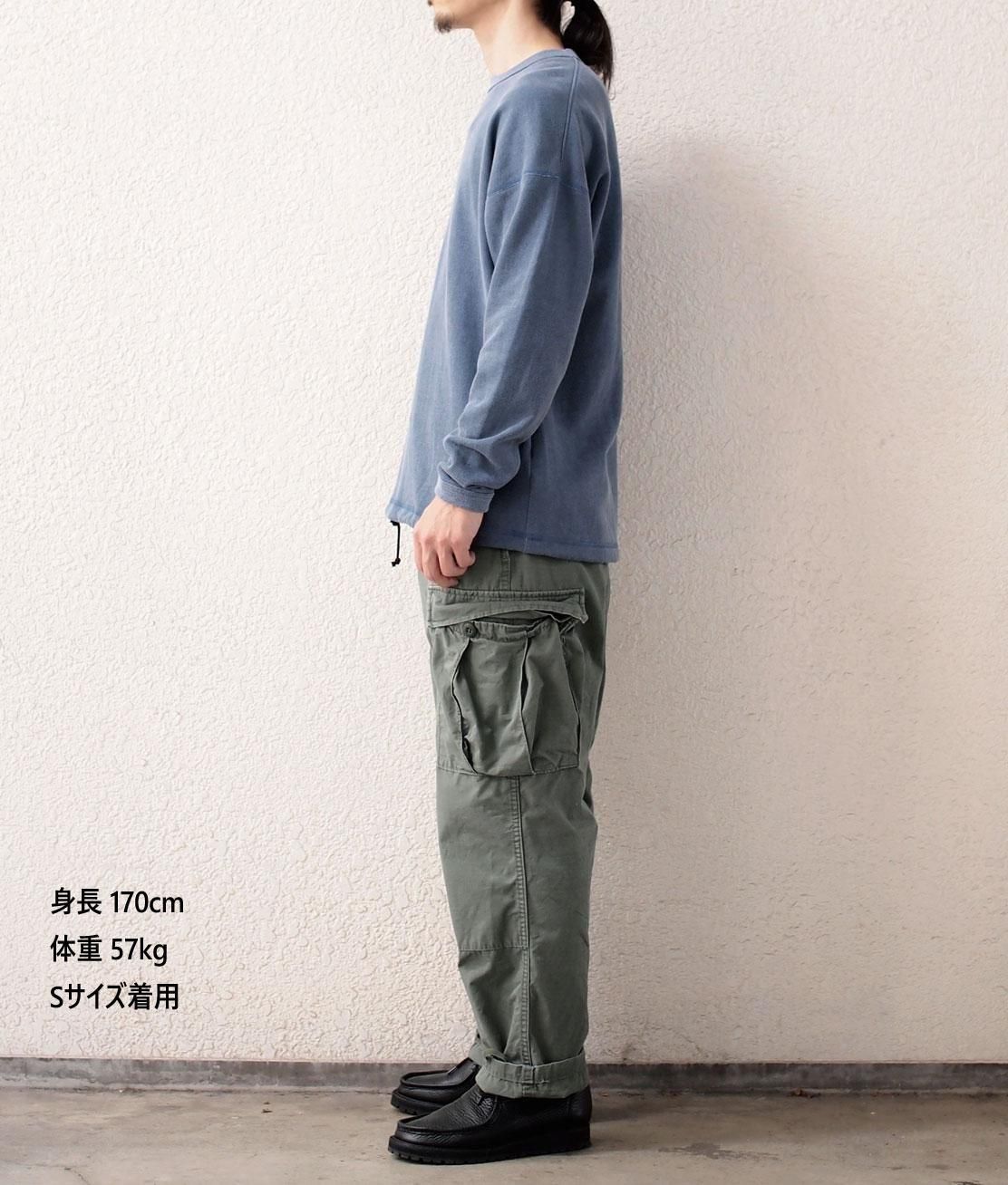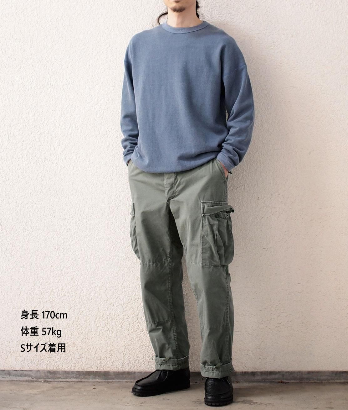 洗濯を繰り返すことで生地のフェード感が増し、よりヴィンテージルックな風合いが楽しめます。春先や秋口にはサラッと一枚で、肌寒い季節にはGジャンやアウターのインナーにもお勧めです。自然と肩が落ちるよう肩幅を広く取ったゆとりのあるシルエットでラフな印象に仕上がり、初夏にはショートパンツとのコーディネートもお勧めです。是非、この機会にお試しください!