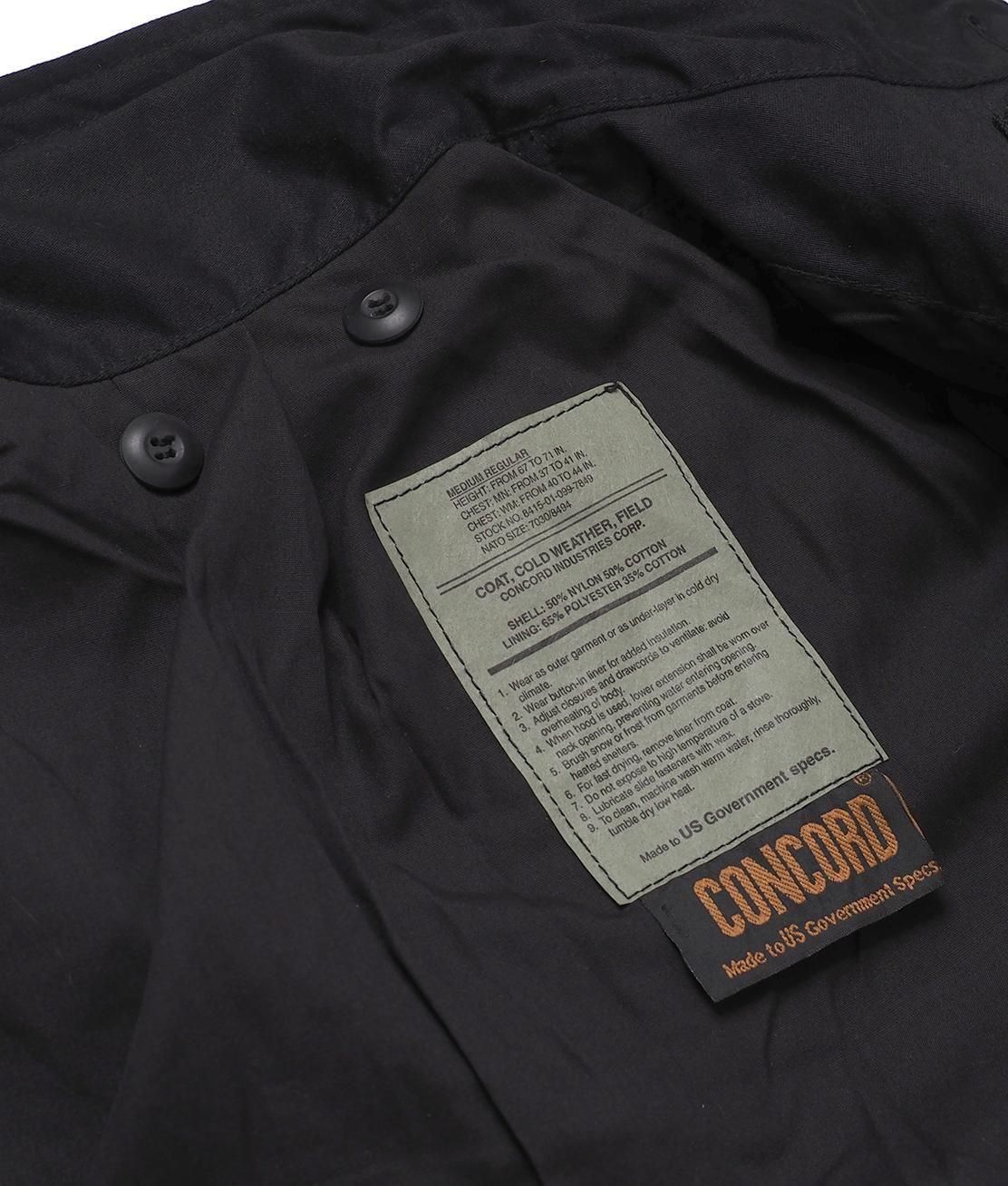 アメリカ軍で1965年に正式採用され、2008年までのおよそ40年以上という長きに渡り活躍したミリタリーアウターの傑作とも呼び声の高い『M-65 FIELD JACKET』。今作は【CONCORD INDUSTRIES CORP(コンコルド・インダストリーズ・コープ)】が民間用として製作した当時の希少なデッドストック品。CONCORD(コンコルド)はアメリカ軍への納入業者最大手のひとつ【ALPHA INDUSTRIES(アルファ・インダストリーズ)】がヨーロッパ市場向けに製造していたレーベルで、素材や作りは同じで生産も”MADE IN USA”となります。1970年代頃から製造が始まり、こちらは1990年代頃に生産された当時のデッドストック品と推測されますが、古い年代のIDEAL社製の真鍮ジッパーが使用されているので、1990年代以前に生産された可能性も考えられます。デッドストック品ですのでコンディションは抜群です。襟ネーム下と胸ポケットにCONCORDタグが付属します。立ち襟と収納力の高い4つのフラップポケットが特徴的なディテールで、襟のジッパーを開くと簡易的なフードが収納されています。可動性を考慮した背面のプリーツやダーツが入る立体的なアームホール、ウエストのフィット感を調節できる腰部のドローコードなど、細部のディテールも大変魅力的です。アメリカ軍専用のキルティングライナーを装備すれば、真冬でも防寒性の高いアウターに様変わりする機能性もミリタリーならでは。ライナー無しで春先や秋口に、ライナー装備で真冬にも対応し、幅広いシーズンで着回せるアウターとして抜群の一枚です。