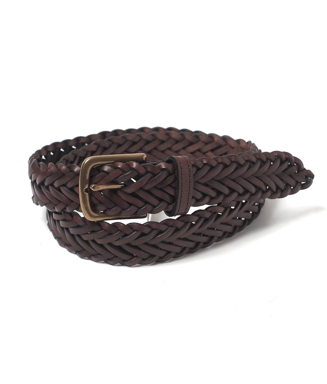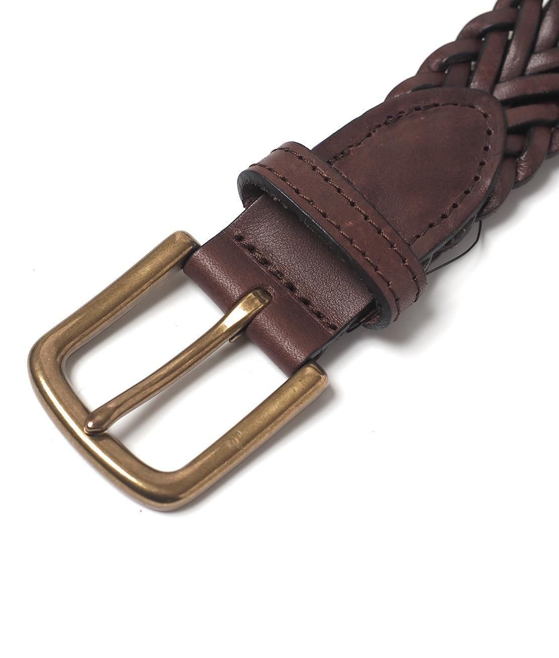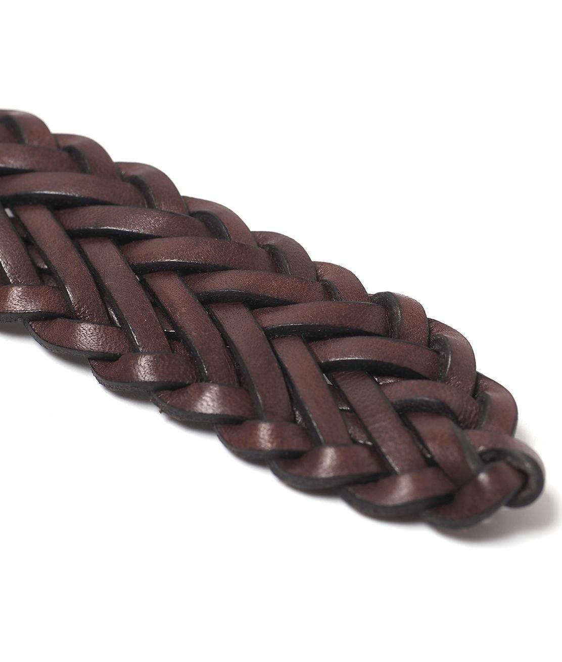 牛革の中でも最も上質で耐久性に優れたフルグレインレザーを編み込んだメッシュベルト。革本来の質感を残し、天然素材としての個性が強く感じられるフルグレインレザーは、革の最上層を使用しているため丈夫で摩耗やキズに強く、長期間使用することで味わいのある経年変化が楽しめます。ヨーロッパ産のフルグレインレザーを使用し、英国ノーサンプトンシャー州の工場でひとつひとつを職人の手作業で仕上げています。メッシュベルトはどの位置でもピンを通すことができ、一般的なベルトに比べて細かいサイズ調節が可能で、コーディネートを選ばずカジュアルからドレスアップまで活用できる汎用性も魅力です。アンティーク調の真鍮製バックルで高級感のある英国トラッドを演出できます。是非、この機会にお試しください。
