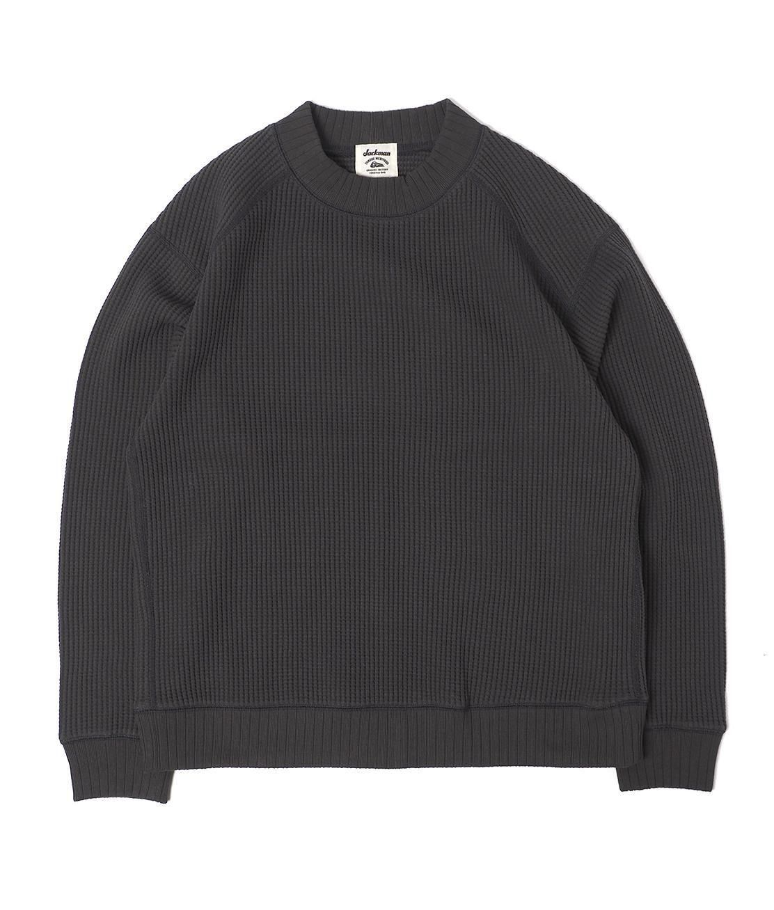 ブランドを代表する代名詞的アイテムとして毎年人気の高いビッグワッフル素材のミドルネックセーター。モックネック風の襟元が特徴的なデザインで、極太の糸を低速でゆっくり編み立てる特殊な編み機で仕立てたふんわりとボリューム感のあるビッグワッフル素材を使用。肩、背中、脇下など、肌に当たる部分は縫い代が平らになるフラットシーマ縫製を採用し着心地も抜群です。適度にゆとりを持たせたシルエットでトップスに程よいボリューム感が生まれ、太め、細めとボトムスを選ばずバランス良くコーディネートができます。