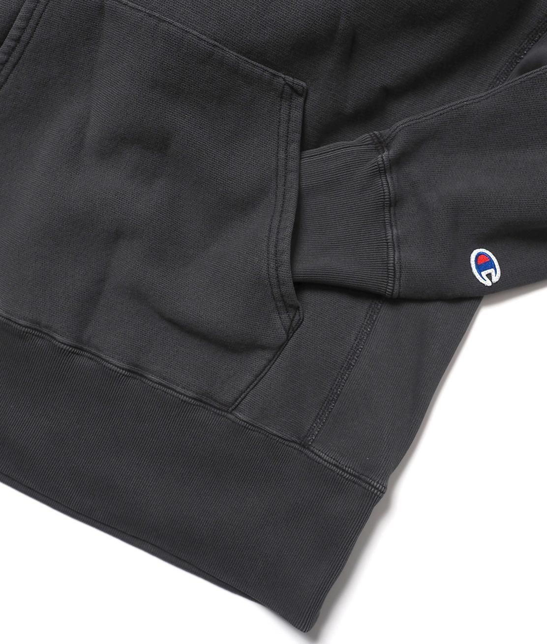 【Champion-REVERSE WEAVE】C3-C118 RW HOODED SWEAT - OFF BLACK リバースウィーブ パーカー 製品染め