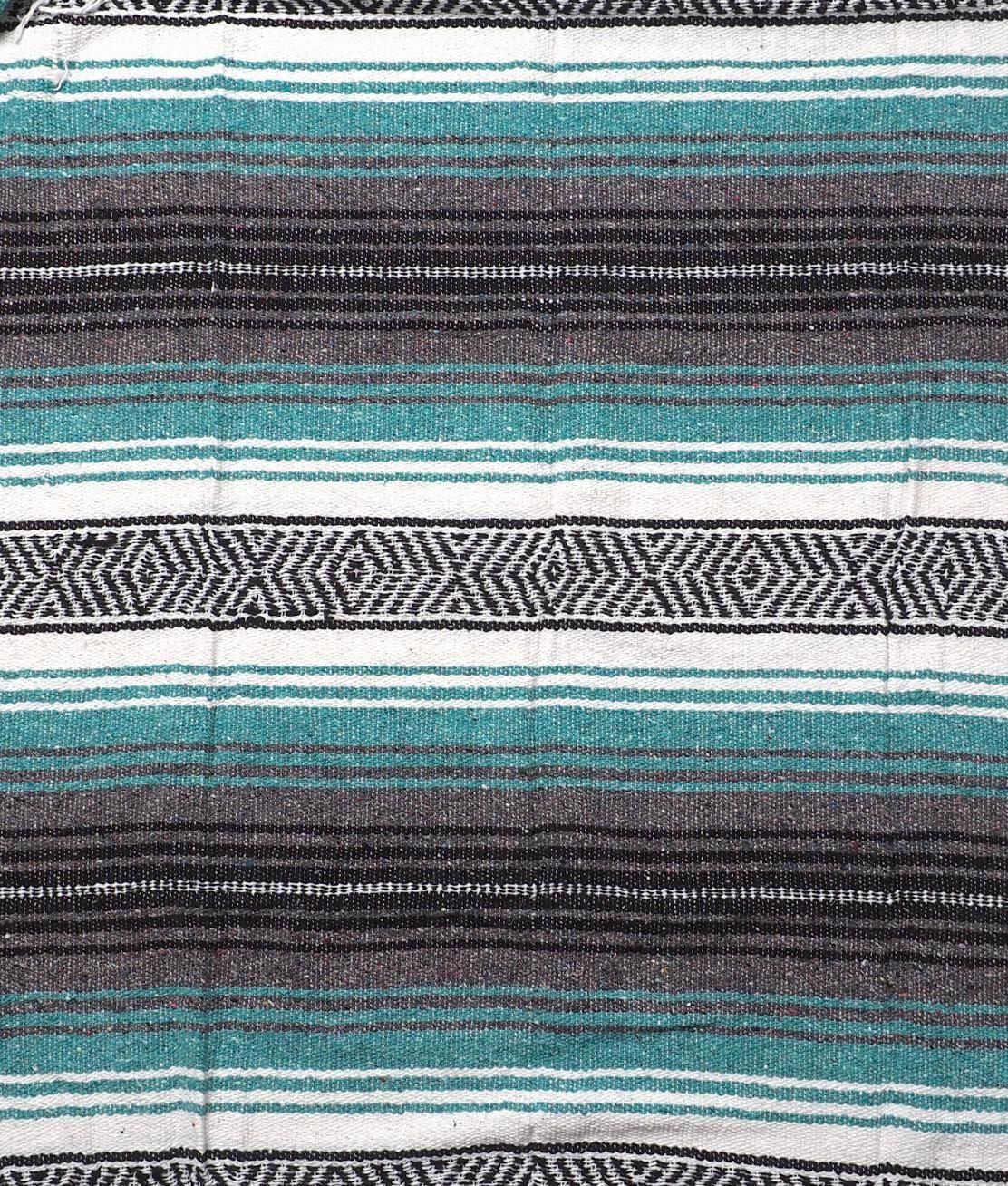 厚手ながら非常に柔らかい作りのファルサブランケット。粗目に織られたアクリル混紡素材は厚手でありながらも柔らかく、シングルベッドほどの大判サイズは、ダイニングキッチンやリビング、ソファーや寝室まで、大きな家具の下に敷いても十分の大きさがあり、アメカジ、サーフなど、雰囲気あるお部屋作りに欠かせないアイテムかと思います。もちろん、屋内インテリアだけでなく、BBQやキャンプ等のアウトドアシーンや、車内の目隠しに使用したりと、幅広い用途で活用いただけます。ブランケットの両端には手結びのフリンジが施されており、手織りならではの温もりのあるデザインも魅力です。