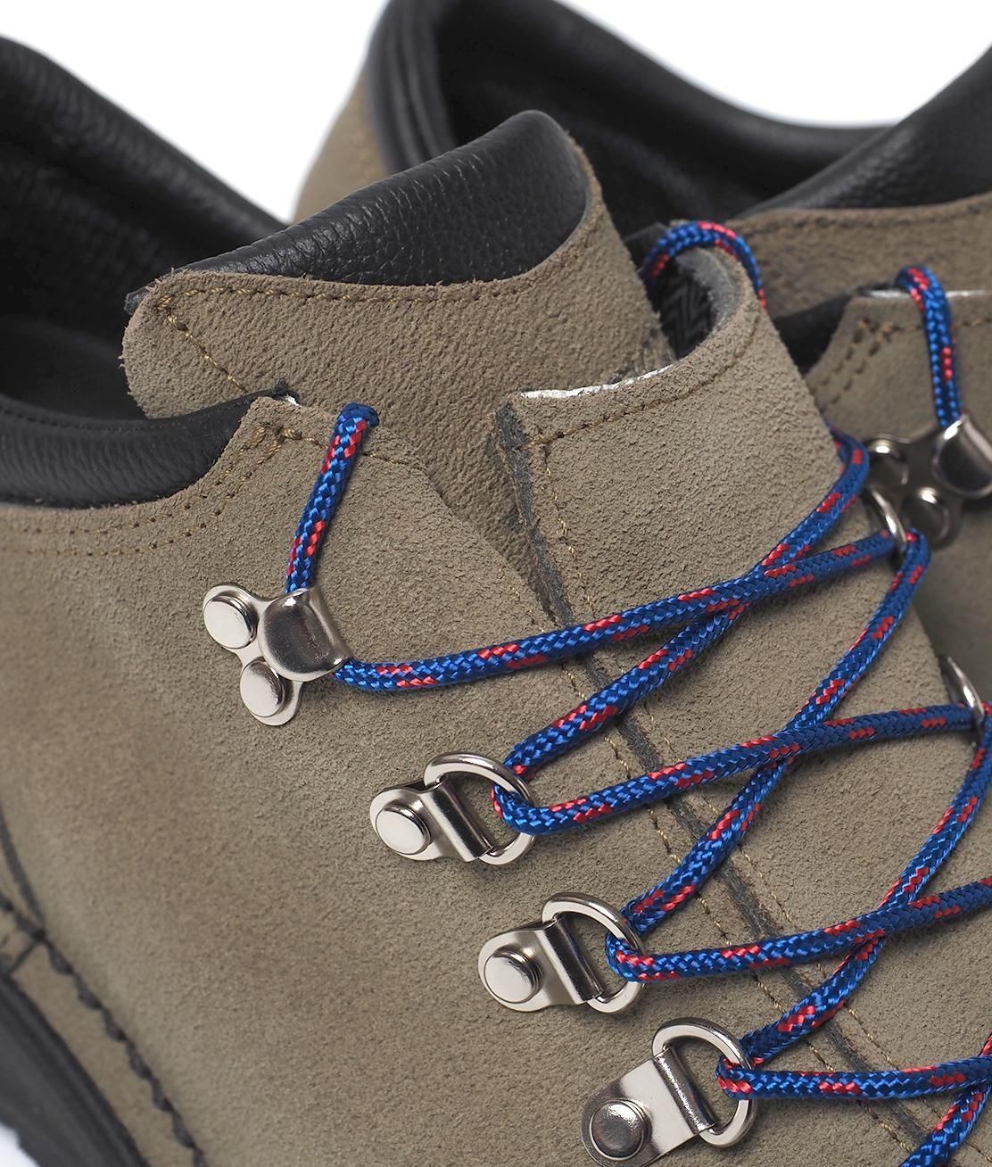 1932年、”可能な範囲の中でもっとも優れた靴を作る”というポリシーを掲げ、 ワークシューズメーカーとしてそのビジネスをスタートしたダナーが、その原点に立ち還って、原産国、素材、工程等を見直し、開発されたNEW PRODUCTの“MT.RIDGE LOW(マウントリッジ・ロー)”。名作マウンテンライトをベースに、より軽量でタウンユースに最適化したローカットモデルです。アッパーには防水スウェードレザーを採用し、アウトドアで使用されるパラコードとのコントラストが都会的で洗練されたルックスに仕上げています。アウトソールにはVIBRAM®︎社のトラクションカスケードソールを搭載し、軽量でクッション性に優れ、安定したグリップ力を発揮。タウンユースにはもちろん、キャンプなどのアウトドアフィールドでも頼りになる機能性を備えています。