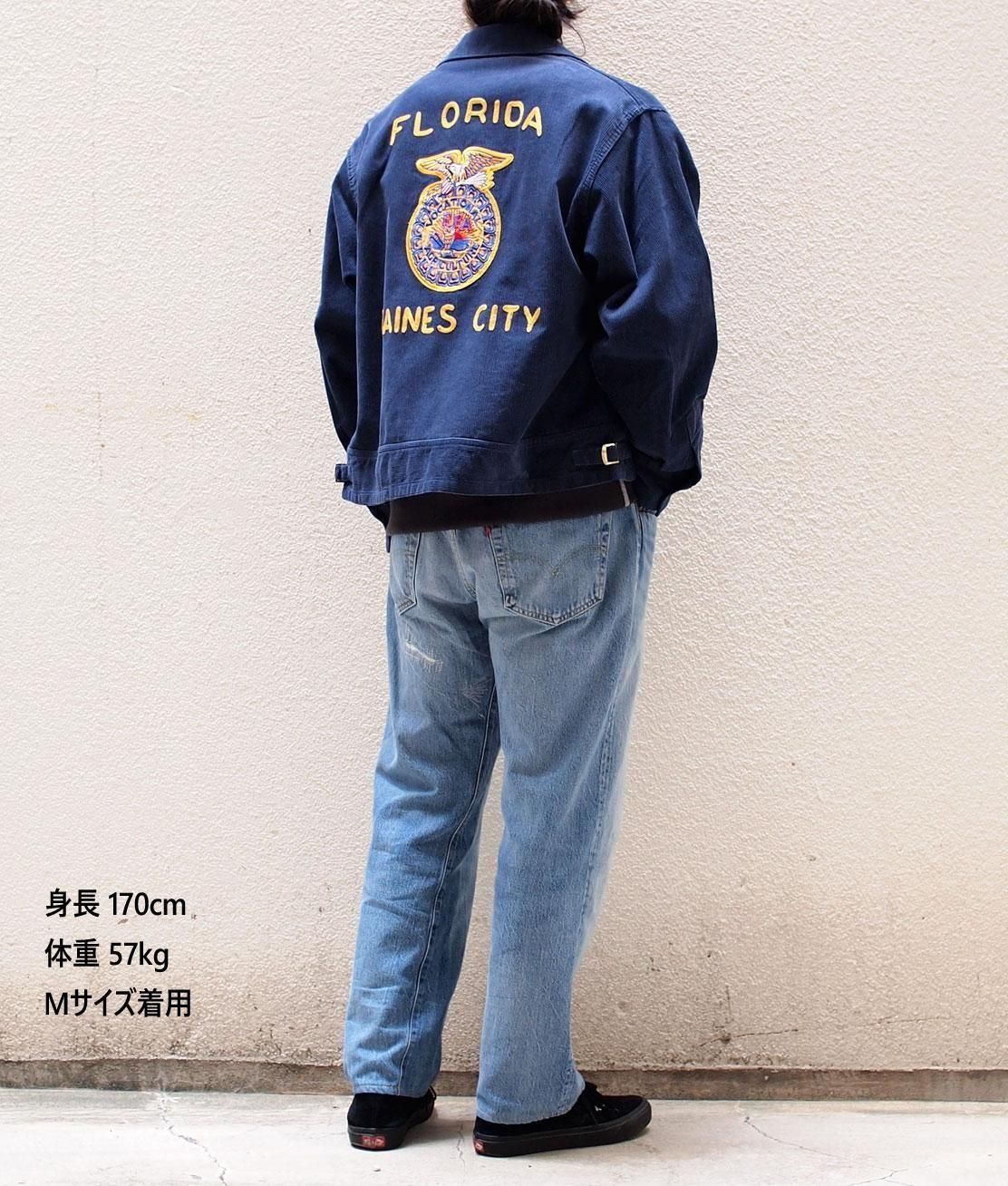 名前の通り、農業学校のユニフォームとあって、アメリカ国内でも郊外の地名を多く見かけます。こちらの”FLORIDA”は色あせたヴィンテージルックなネイビーカラーが抜群にクールで、カントリーサイドの雰囲気がポイントです。Gジャンのようなショート丈にたっぷりと取られた身幅でTシャツにざっくりとラフに羽織っていただいても様になるアイテムで、ネルシャツやパーカー、セーター等、厚手のインナーとも幅広いレイヤードスタイルがお楽しみいただけます。また、お洗濯と着用を繰り返すことで天然繊維ならではのアタリや色落ちといった経年変化が見られ、ヴィンテージ風の雰囲気が味わえる一着です。是非、お試しください。
