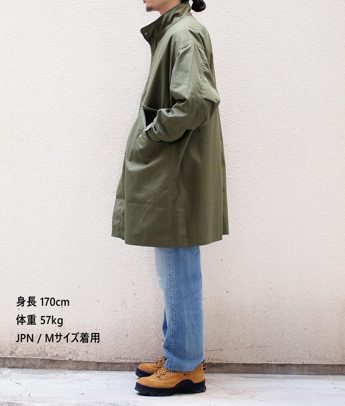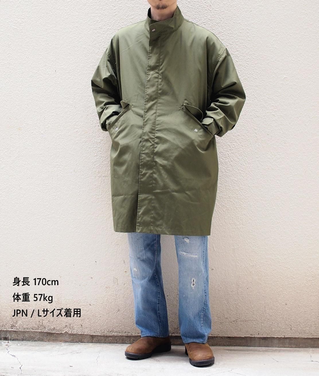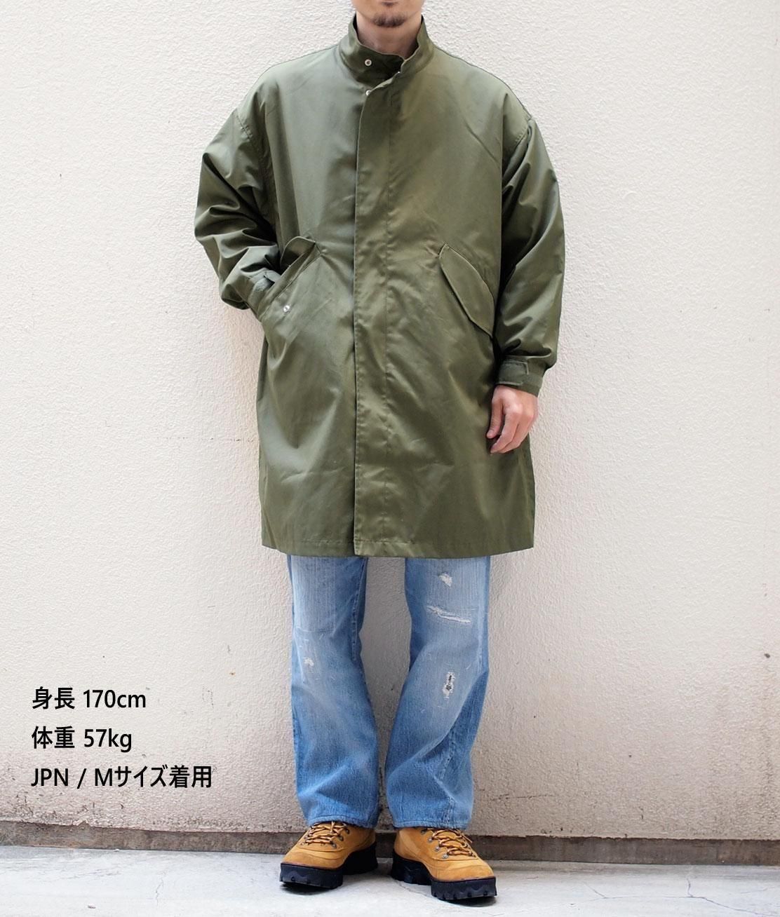 春先や秋冬の羽織りとして幅広いシーズンで使用機会の多い新作モッズコート。1979年に登場したトレイルパーカーと同素材の「ポリエステル65%、コットン35%」を使用し、朝晩が冷え込む季節の変わり目やちょっとしたお出かけの際にサッと羽織りやすいコートです。アメリカ軍の名作『M-65 フィッシュテールパーカ』をベースに、ゆったりとした身幅と肩幅、袖回りでラフに羽織ったり、秋冬はインナーダウンを活用してオーバーコート的な着回しも楽しめます。袖口はマジックテープとゴムで調節がしやすく、軽い着心地ながらもパリッとした質感の生地は軽快で都会的な雰囲気があり、色々なアイテムとのレイヤードがお楽しみいただけます。